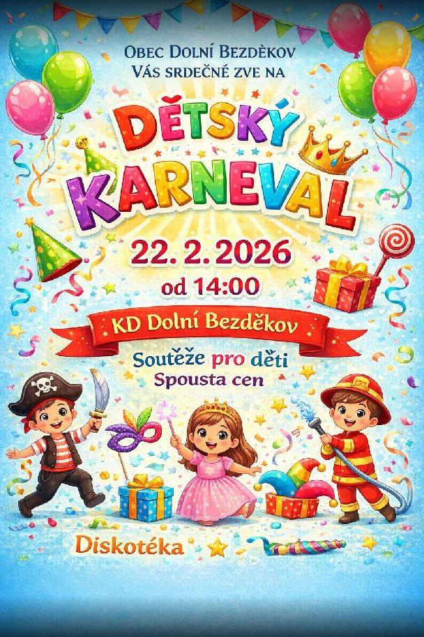 DĚTSKÝ KARNEVAL VE VEJVANOVICÍCH V NEDĚLI 1.3.2026 OD 15 HODIN